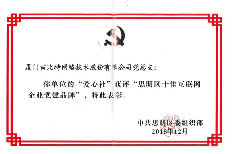 经初审评选、、、网络评选和专家评审等环节,,"厦门LEWIN乐玩网络技术股份有限公司党总支-爱心社" 从全区28个参评党建品牌中脱颖而出,,,,获评"思明区十佳互联网企业党建品牌"。。